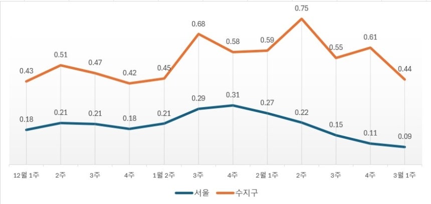 | <수지구 아파트값 상승률, 출처 : 한국부동산원> |